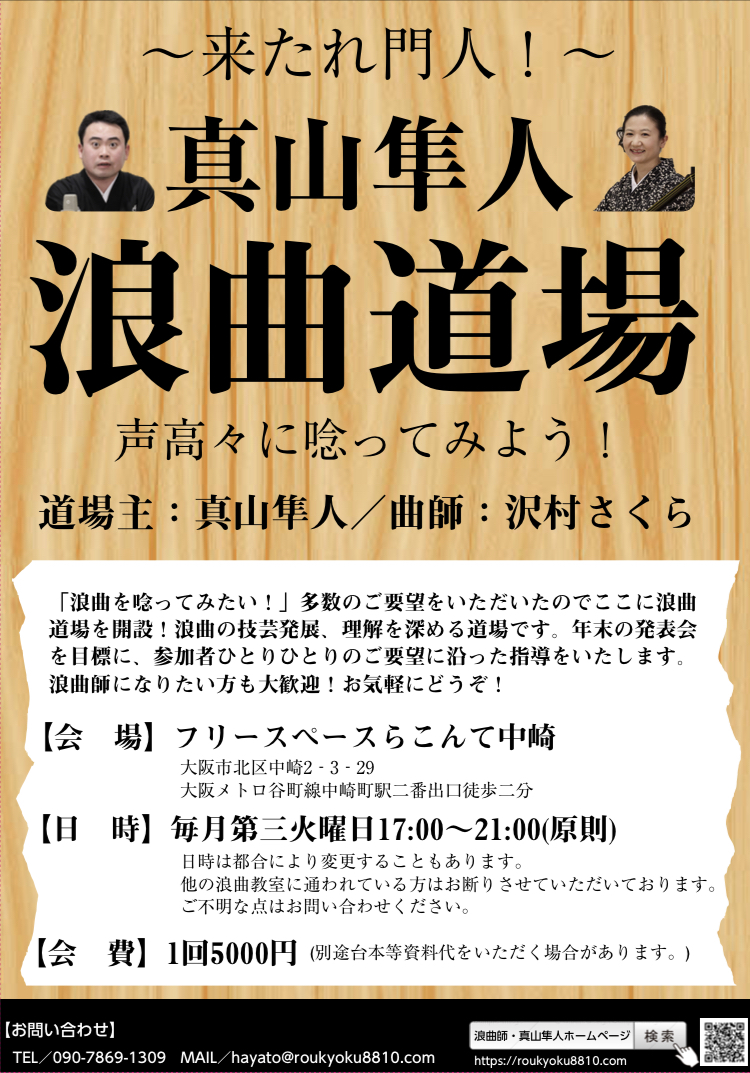 講師 : 道場主・真山隼人/曲師・沢村さくら