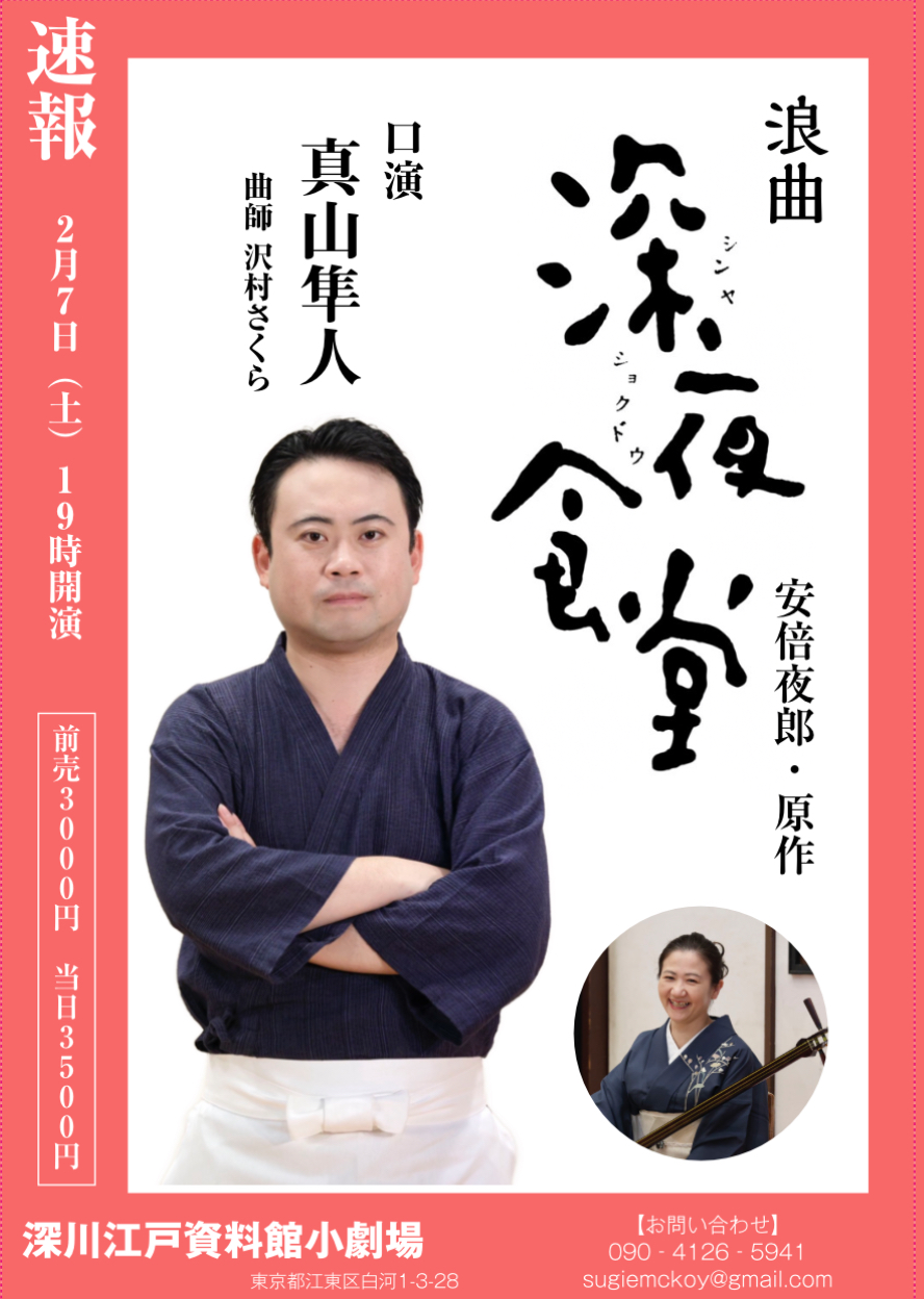 安倍夜郎先生の大ヒット漫画「深夜食堂」ここに浪曲化!