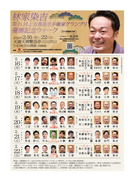 > 2月19日(木)天満天神繁昌亭昼席林家染吉上方落語若手噺家グランプリ優勝記念ウィーク