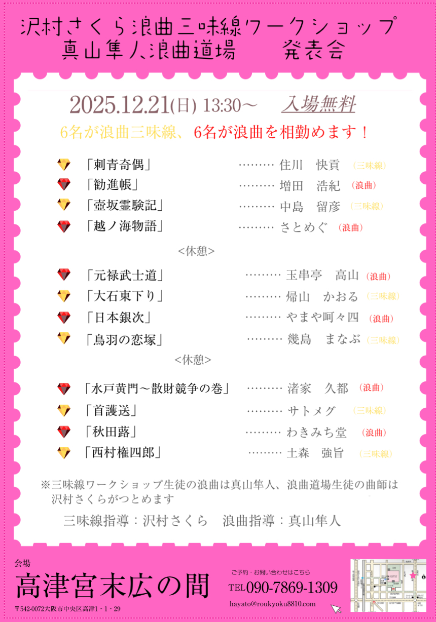 12月21日(日)浪曲三味線ワークショップ・浪曲道場発表会