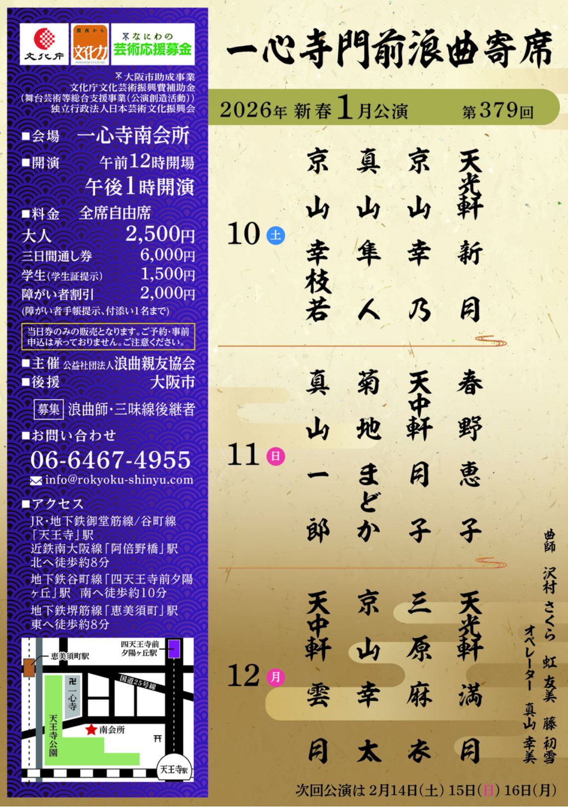 1月10日(土)一心寺門前浪曲寄席