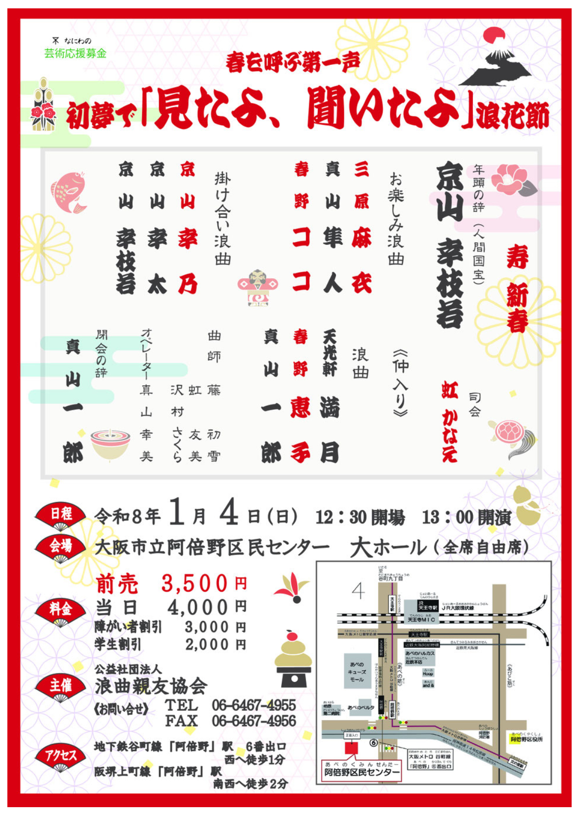 開演 : 13:00(12:30開場) 会場 :阿倍野区民センター大ホール