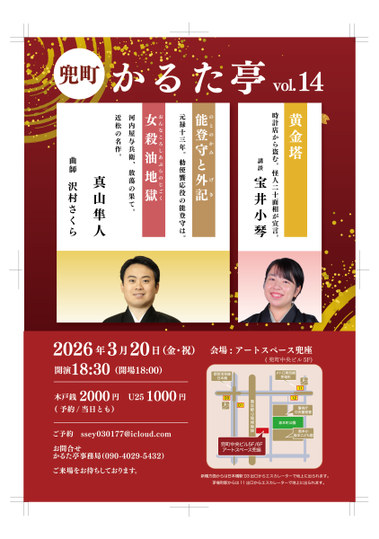 出演 : 真山隼人、沢村さくら、宝井小琴 料金 : 2000円